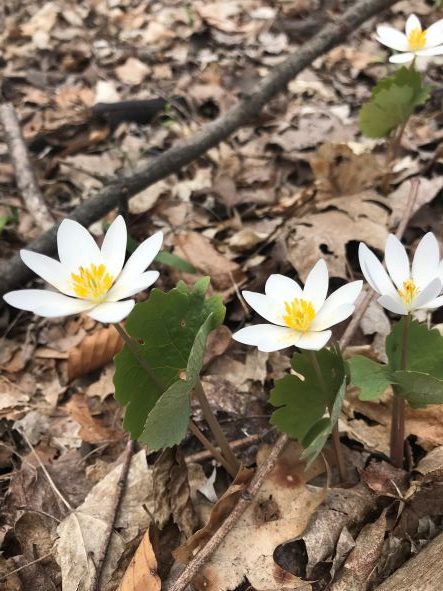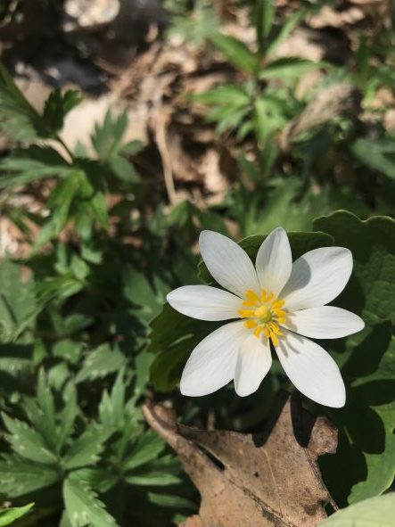 Bloodroot is a perennial wildflower native to Michigan. It flowers from April to May with a white blossom.