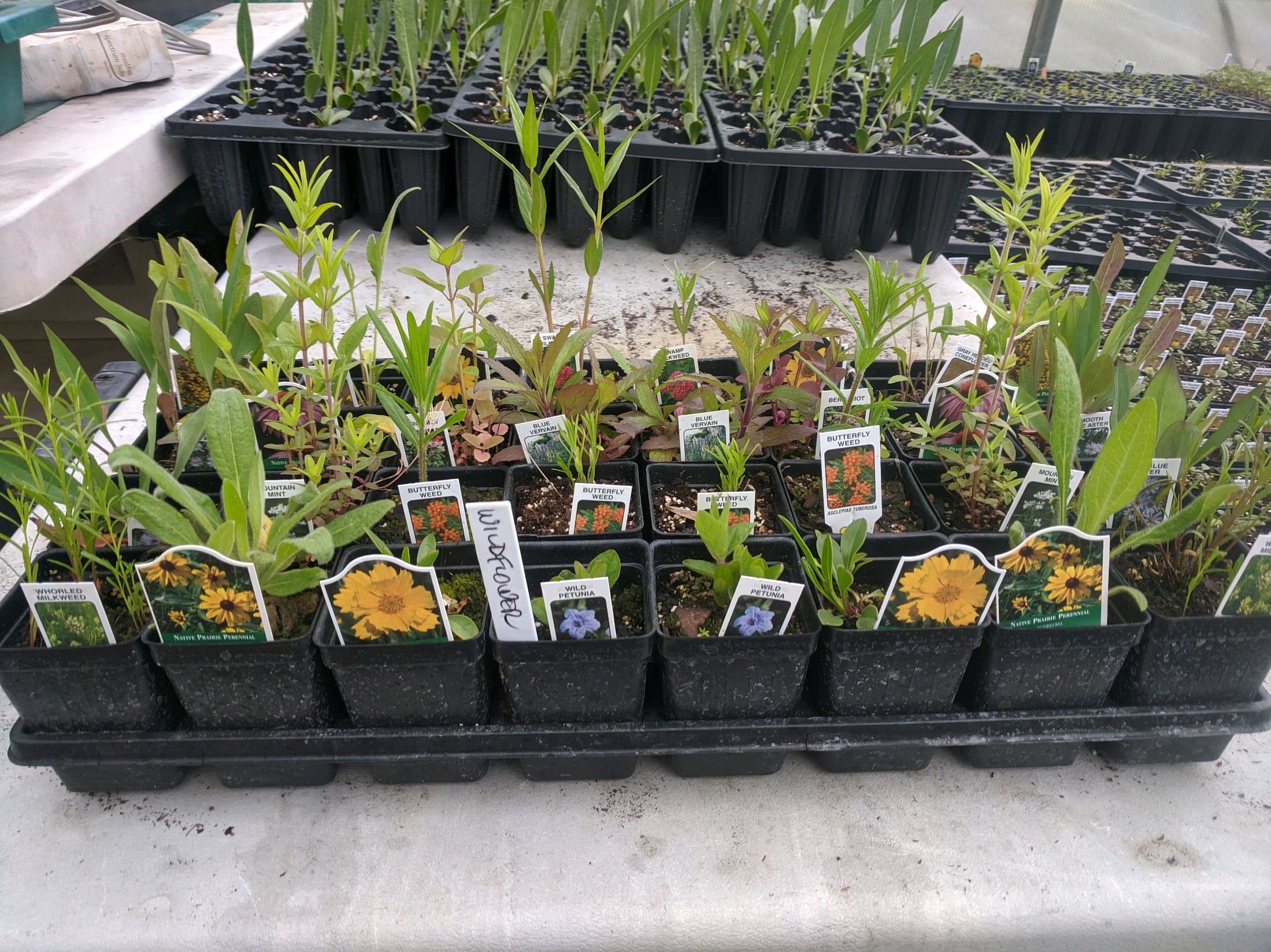 A flat of 32 individually potted and tagged plants